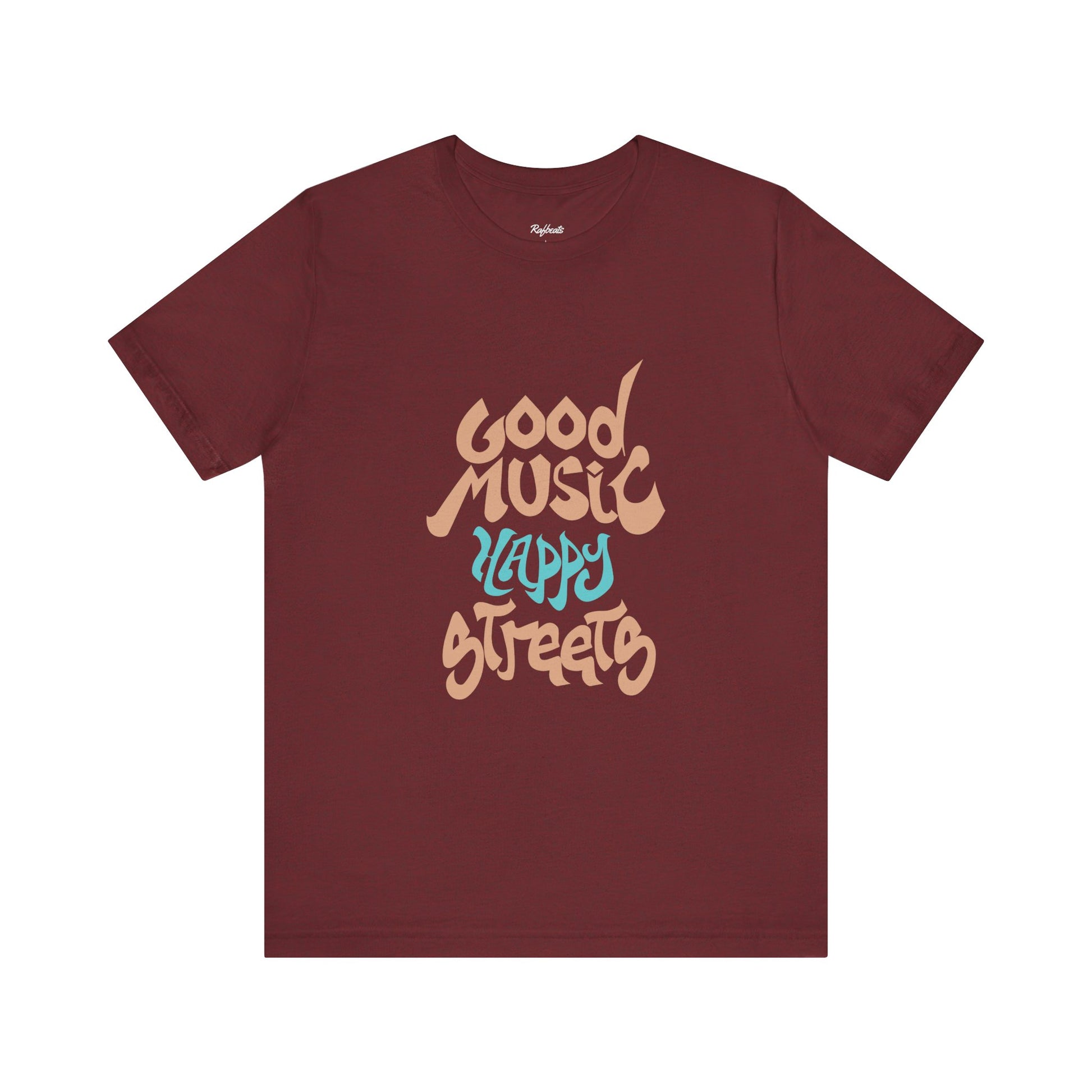 Good Music Happy Streets Tee, Unisex Short Sleeve Shirt, Gift for Music Lovers
