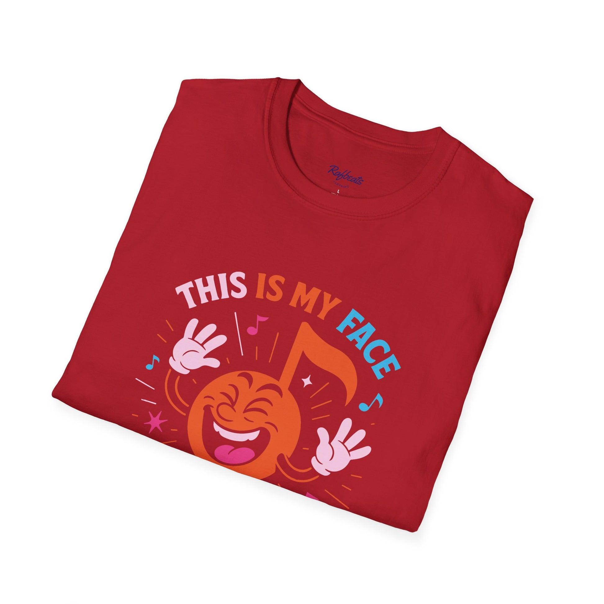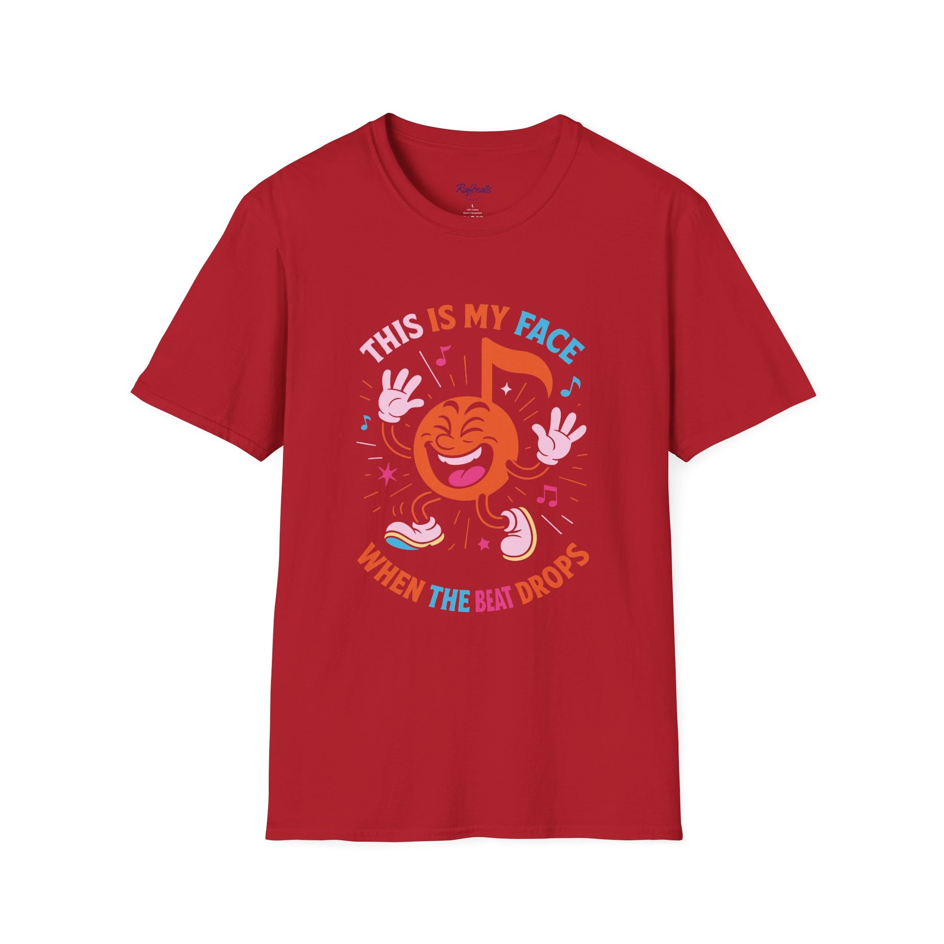 This Cherry Red T-shirt features the design 'This is my face when the beat drops.' It is excellent for a festival outing or just relaxing with friends. Perfect for adults looking for a comfortable and stylish tee for casual and semi-formal settings. Ideal for music festivals, concerts, hangouts with friends, and everyday wear.